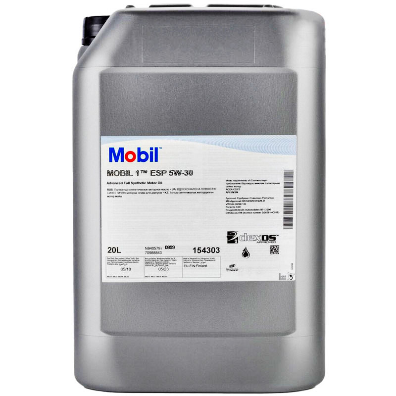 • Mobil 1 ESP 5W-30 відповідає вимогам промислового стандарту 'API SP' або перевершує їх. що допомагає запобігти передчасному запаленню на низьких оборотах (LSPI) і робить його кращим для сучасних бензинових двигунів зменшених габаритів з турбонаддувом та прямим упорскуванням палива.